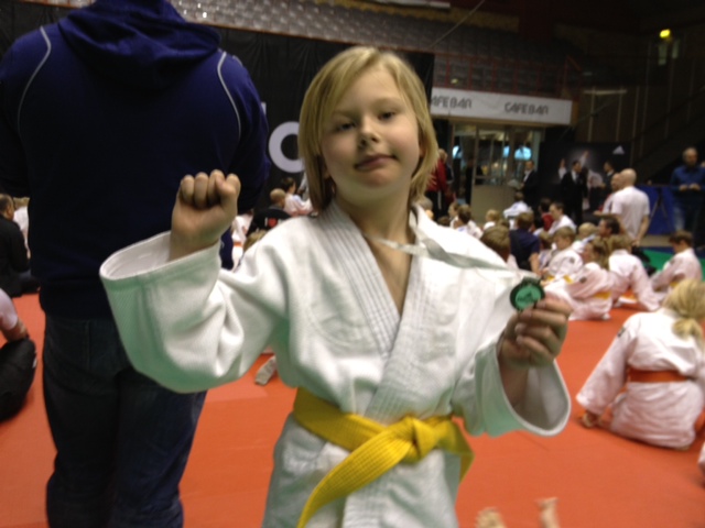 Erik var givetvis lite nervös inför tävlingen men garanterat inte lika nervös som jag. Jag satt på läktarna tillsammans med bland andra Mikkey Dee, vars son också går i judo, och hade en puls på 180.