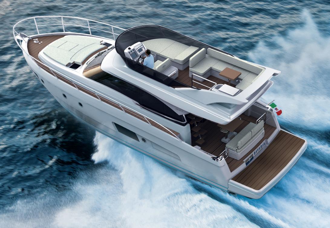 Det tyska märket som gjort sig känt för att att erbjuda marknaden bra kvalité men till humana priser breddar nu sitt sortiment och släpper för första gången en båt med flybridge. Det är en minst sagt rymlig modell med tre hytter och två toaletter. I vanlig Bavaria-ordning ska modellen pressa priserna i segmentet och det lyckas det med. Bavaria, Europas största båtvarv, har ju länge försökt att effektivisera och förbättra produktionen av sina båtar, inte minst genom stora fabriker med löpandeband-teknik. De har slagit de flesta på fingarna med enorma utrymmen och svårslagna priser. Om man däremot gillar designen är en smaksak.