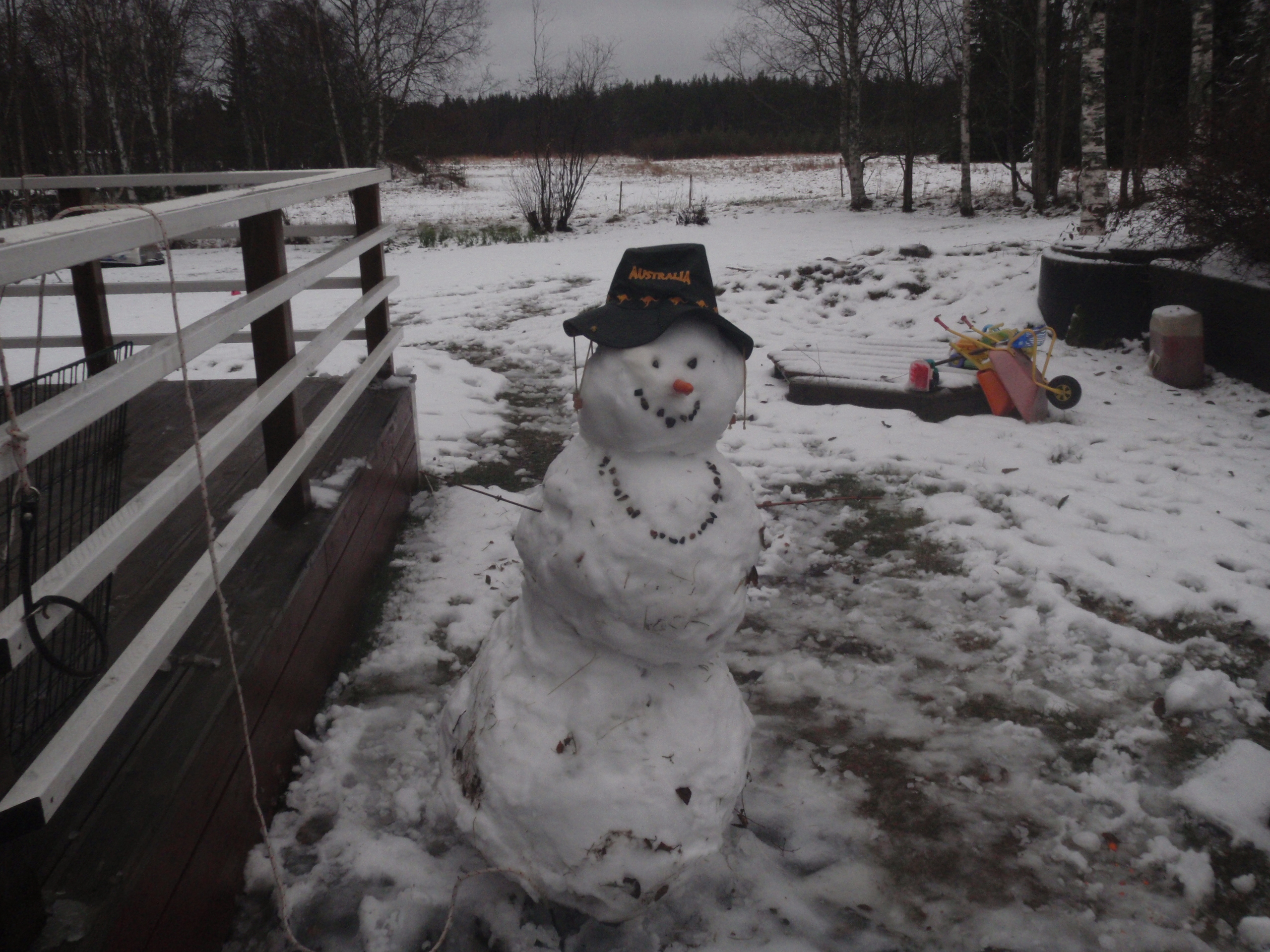 Man kan vänja sig vid allt, även om man kommer från ”Down Under”. Den här snubben blir inte långlivad. Det regnar och blåser i Kalix, och snön, en dm, som föll i natt är snart borta.