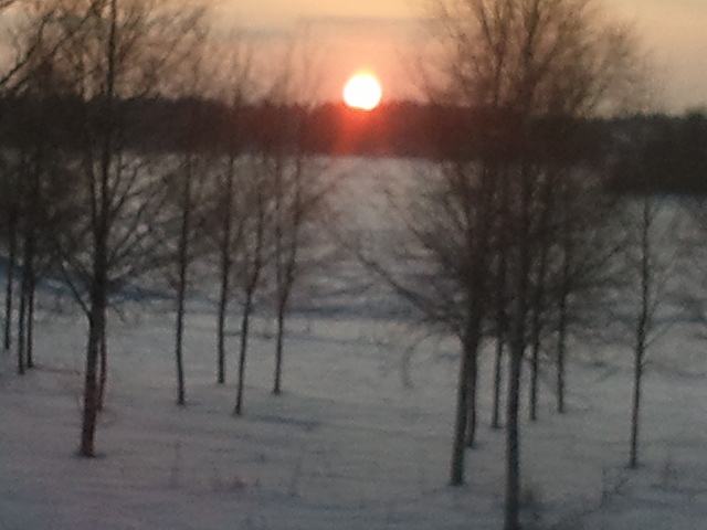 Jag stannade till dagen efter midvinterdagen eftersom det snöade på den ”riktiga ” dagen. Tog en bild med mobilkameran på solståndet här uppe när solåret just vänt. Kl är 12 och solen segar sig sakta upp i nivå med trätopparna. Alla som läst lite om meteorologi vet ju att det är en spegling man ser. Solen är faktiskt strax under horisonten. Det är därför den på bild nästan är genomskinlig. Vi har en köldperiod nu sedan några dagar. Som kallast har det varit -28-29 grader och det betyder att det varit minst -35 där vi bodde förut (inland). Granen (hämtad i skogen) är klädd, julskinkan griljerad och allt är förberett inför julaftonen som jag firar som ett midvinterblot. Jag tror att jesus funnits och att han var en god människa, men det har funnits miljoner människor efter honom som lidit ännu värre under kristendomens tortyr, häxprocesser mm i Guds namn. Många av er är säkert fortfarande troende, åtminstone i Juletid, men jag vill inte vara god för att få en belöning i en himmel dit inte andra är välkomna för att de inte ens vet att det finns kristendom och en Jesusberättelse…..Det är, eller borde vara, naturligt att vara god!