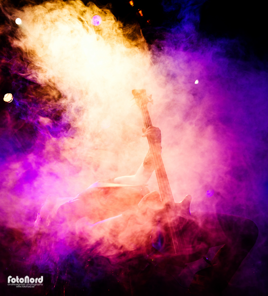 Det var väldigt mycket stage diving, mosh pit och en hel del näsblod. Men det värsta var en kille som klättrade upp på scen och var så överpeppad så att han sprang fram och bet mig i vänsterhanden när jag spelade. Jag började inte blöda så det gick bra men han fick en flygtur av scen 😉 Jag träffade han efter giget och han beklagade sig men det var ingen fara.