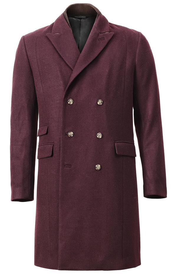 – Den sofistikerade dubbelknäppta rocken med spetsiga slag får nytt liv hos H&M i djupt vinrött.