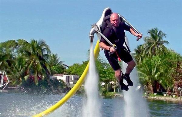 Jetpacken drivs som sagt av vatten och har en lång slang kopplad till sig. Slangen sitter i sin tur fast i en liten plastbåt som suger i sig vattnet med hjälp av en motor. Motorn på 155 hästkrafter gör att vattnet skickas i hög fart  till ryggsäcken man har på sig. Ryggsäcken sprutar sen ut vattnet med en sån hastighet att man lyfter.
