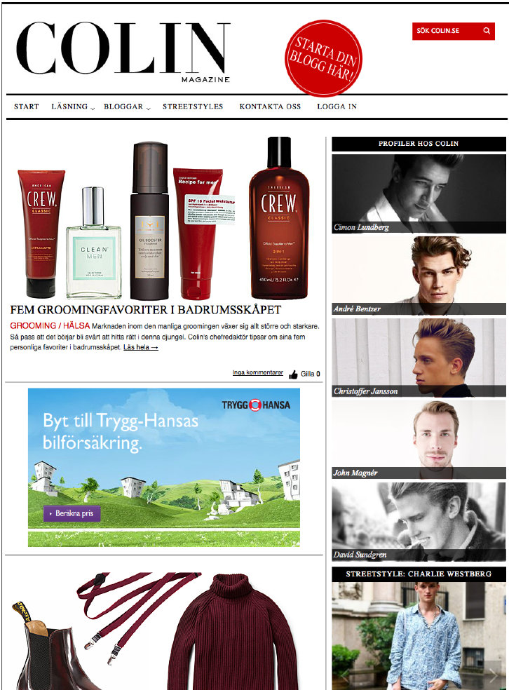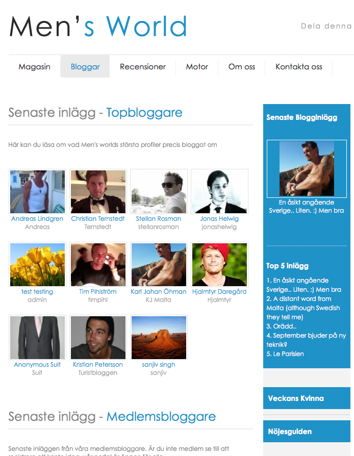 Ja sidan börjar växa fram men långt i från färdigt. Vi kunde ha väntat med att lägga upp nåt innan allt var klart men resonerar att sidan ska växa fram naturligt. Men trots att vi inte lanserat den officiellt börjar vi redan få rätt bra med trafik ,och såg precis att Chrilles gamla robinsson kollega Angela jämförde oss med Cimon Lundbergs nya sida. Vi är tydligen betydligt mer macho än hans sida, men saknar lite mode och träning, men lugn det kommer komma mer mode och träning framöver. Hon påpekade att vi inte hade några stora media profiler, men man behöver inte vara avdankad såpa kändis för att ha en intressant blogg:) Dock kommer det flera s.k ”profiler” inom kort.. Ni får hålla till godo med mig så länge hehe.