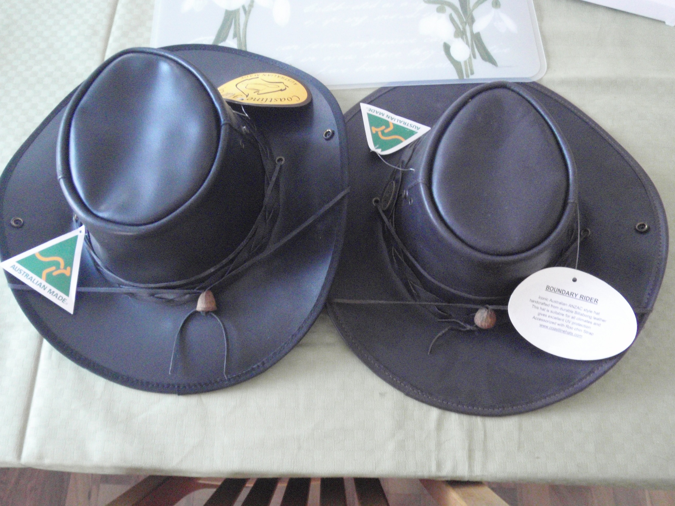 Nu när vårsolen lyser och det har blivit varmare går tankarna till sommarhalvårets marknader och mässor. Jag har utökat sortimentet för att även ha några prisvärda artiklar som kan intressera folk som har naturintressen men inte vill investera i en hatt. Brättena är uppfällbara, hakrem med aboriginerknut (ensam om)