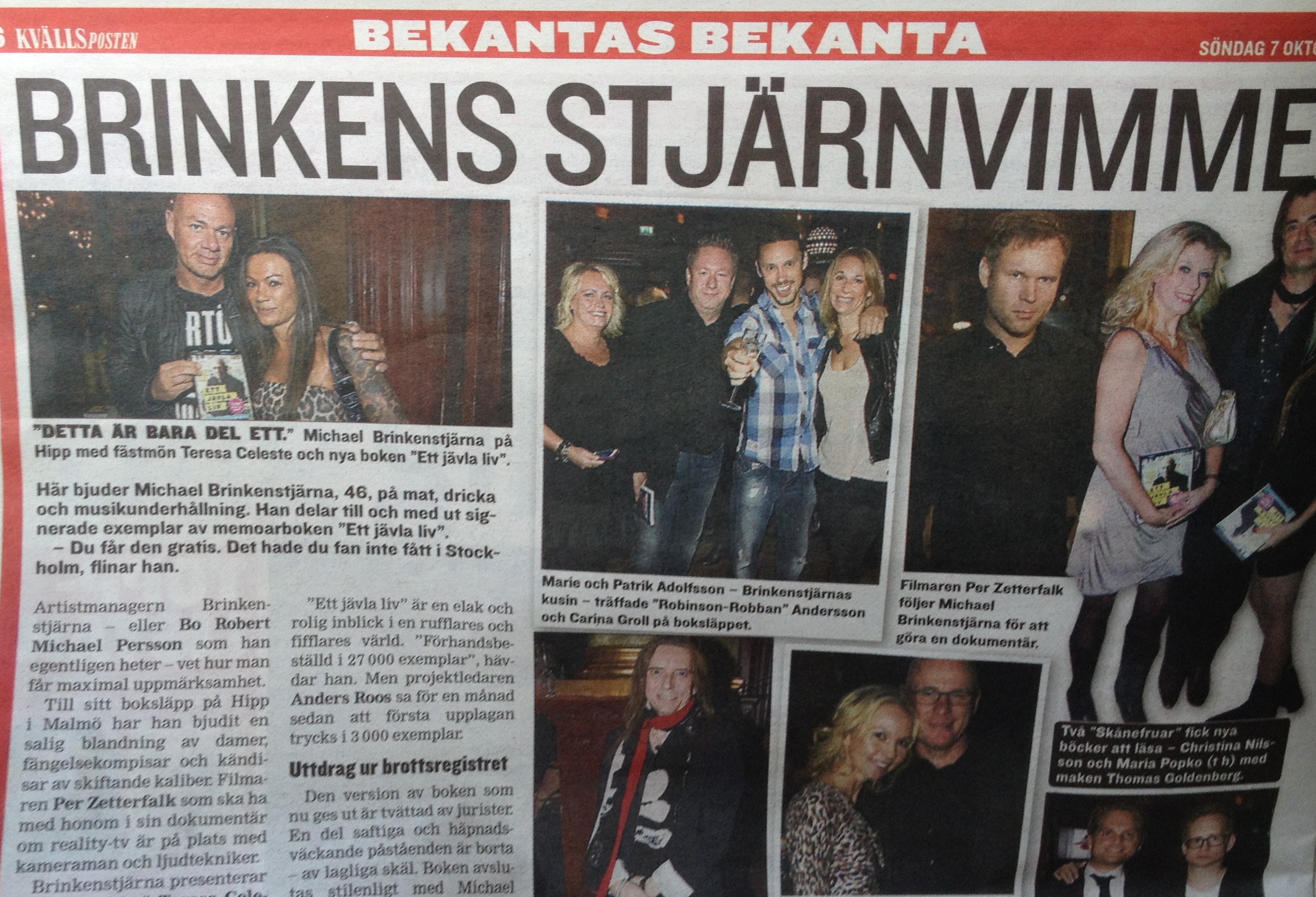 För en tid sedan då jag hade release fest för min bok ”ETT JÄVLA LIV ” ,blev det ett litet partaj ,som säkert skulle tilltala en & annan Rockstar !! Tanken var att samla medarbetare ,släkt ,vänner & en del sköna ljusskygga typer som alltid stöttat mig & mina galna val i livet. Platsen blev Malmö istället för Stockholm & det blev mkt lyckat .Spriten flödade & det var en mkt bra stämning .